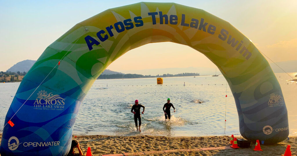 Event package pickup is in the morning before the swim from 6-6:45AM at the Start Line at Willow Beach in West Kelowna.