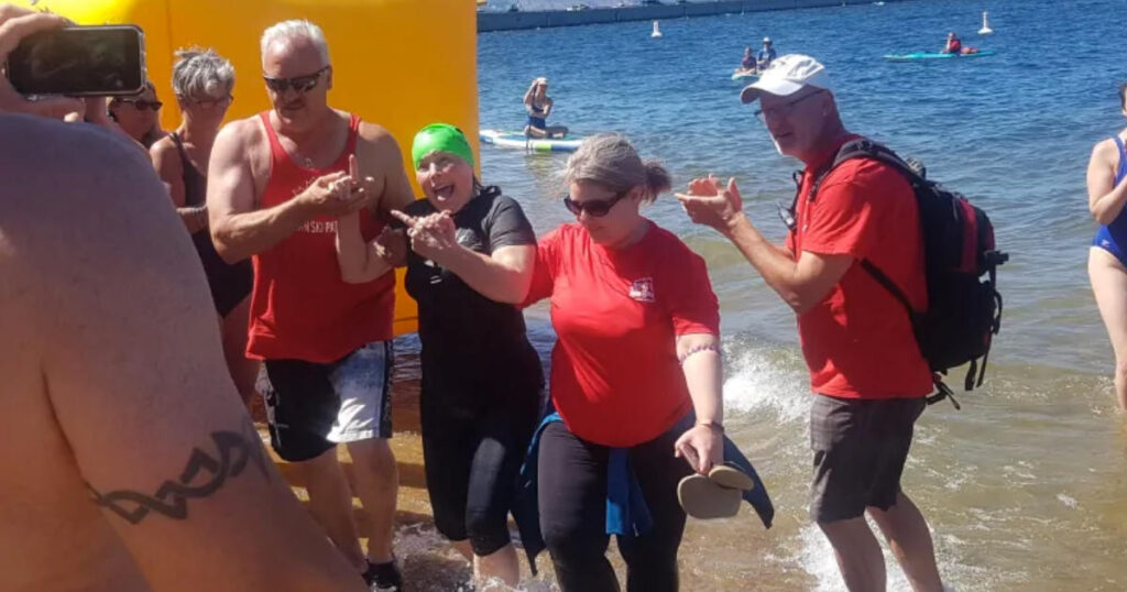 - A swim monitored by lifeguards and boats on the water, COSAR, and the RCMP Lake Patrol.