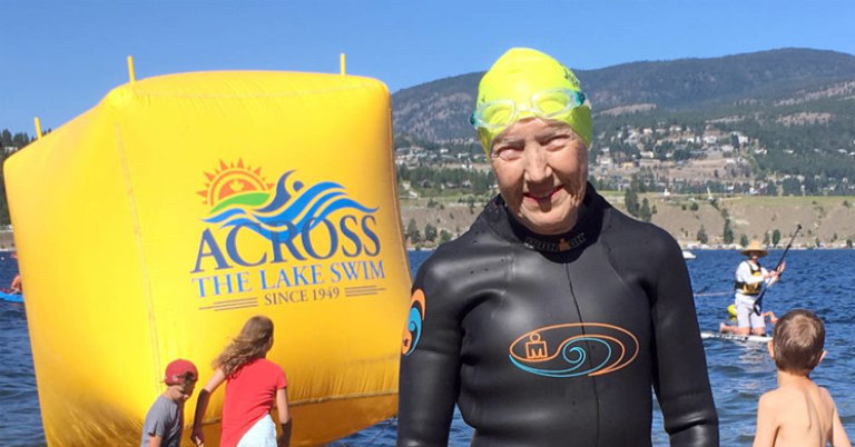 June 24, 2022Kelowna's 90-year-young Conny Stamhuis is ready to attempt her sixth 2.1 kilometre swim across Okanagan Lake on July 16, 2022.